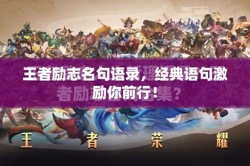 在王者荣耀这款深受玩家喜爱的游戏中,不仅有丰富的英雄角色和独特的游戏玩法,还有许多充满智慧和励志的名句,这些名句既是游戏中的经典元素,也是许多玩家心中的座右铭,以下是一些王者经典名句励志语录,希望能给大家带来正能量和启示。