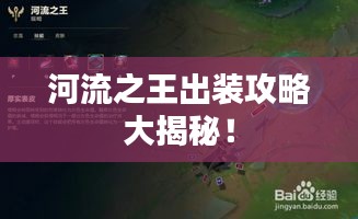2、注意事项:在出装过程中,不要过于追求高攻击力,忽略了生存能力,合理的攻防平衡才能更好地发挥河流之王的潜力。