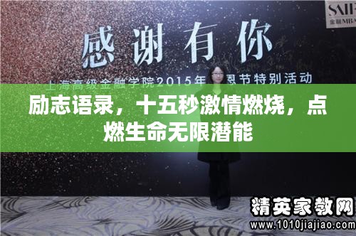 在这个快节奏的时代,我们的生活充满了繁忙和压力,我们需要一些简短而富有力量的话语来激励我们前行,在这篇文章中,我们将为您带来一些励志语录,只需十五秒,便能点燃您的激情。