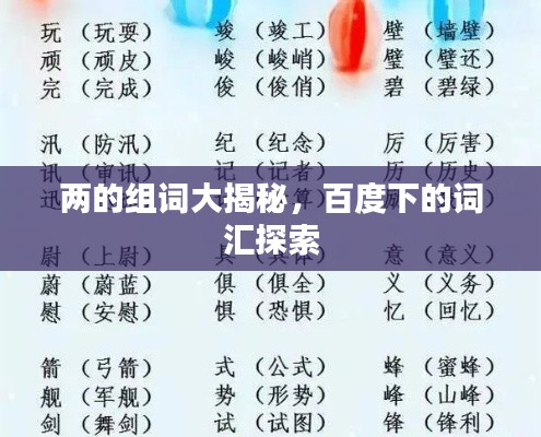 "两的组词"是汉语中非常常见且重要的词汇,通过百度搜索,我们可以找到更多的相关词汇和短语,帮助我们更好地理解和运用汉语,希望本文能为大家带来帮助,让我们一起探索这个充满奥秘的词汇世界吧。