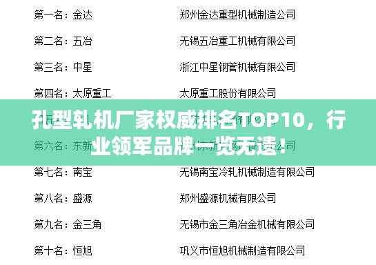 在金属加工行业中,孔型轧机是核心设备之一,其质量直接影响产品的品质与生产效率,选择一家优质的孔型轧机厂家至关重要,本文将介绍孔型轧机厂家排名前十名,以供参考。