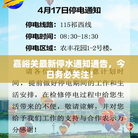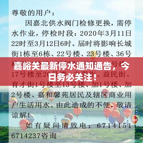 嘉峪关最新停水通知通告,今日务必关注!