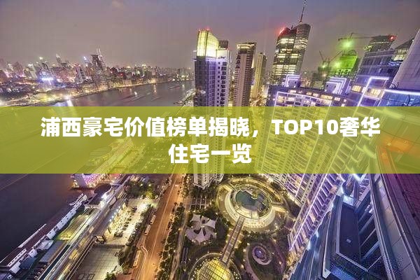 随着城市的发展和经济的繁荣,上海的浦西地区逐渐成为豪宅的聚集地,顶级住宅以其无与伦比的品质、优越的地段和豪华的生活配套,吸引了众多高端人士的目光,本文将为您揭晓浦西豪宅价值排名前十名,带您领略这片土地上的奢华风采。