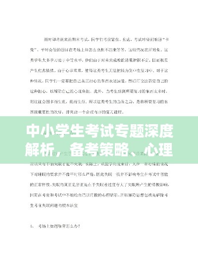 中小学生考试专题深度解析,备考策略、心理调适与技巧提升!