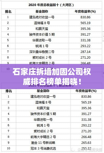 随着建筑行业的不断发展,拆墙加固工程已成为一项重要的建筑工程,在石家庄,众多拆墙加固公司如雨后春笋般涌现,为市民提供优质的服务,本文将为您介绍石家庄拆墙加固公司的排名,以便您在选择时做出明智的决策。