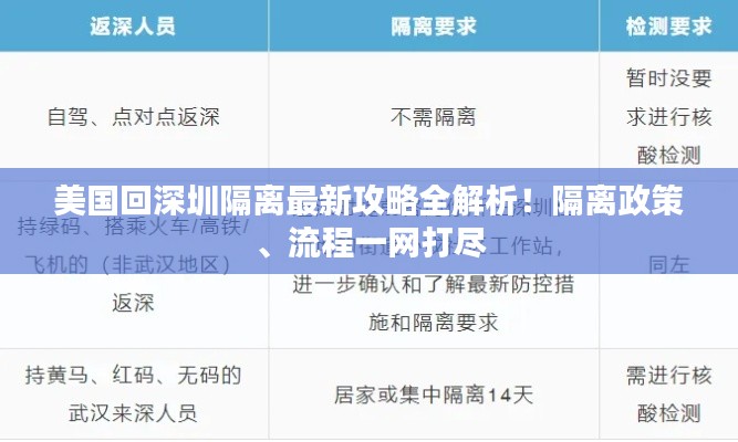 随着全球疫情的逐渐稳定,越来越多的人开始计划从国外返回国内,特别是那些在美国工作和学习的朋友们,他们可能迫切希望回到深圳这个充满活力的城市,本文将为您提供关于从美国返回深圳的最新隔离攻略。