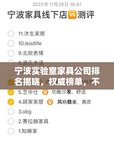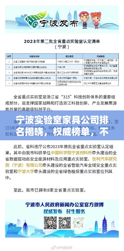 宁波作为中国重要的港口城市之一,实验室家具行业在这里也得到了长足的发展,随着科研领域的不断拓展和实验室建设的日益普及,宁波的实验室家具市场呈现出蓬勃的发展态势,本文将探讨宁波实验室家具公司的排名,介绍一些在市场上表现突出的企业。