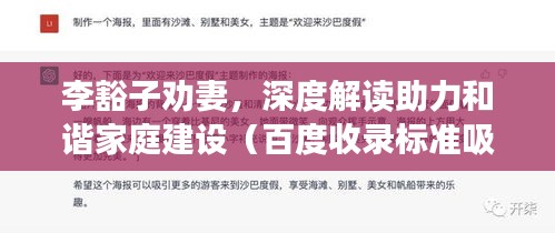 李豁子劝妻,深度解读助力和谐家庭建设(百度收录标准吸睛标题)