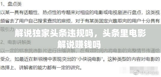 解说独家头条违规吗,头条里电影解说赚钱吗