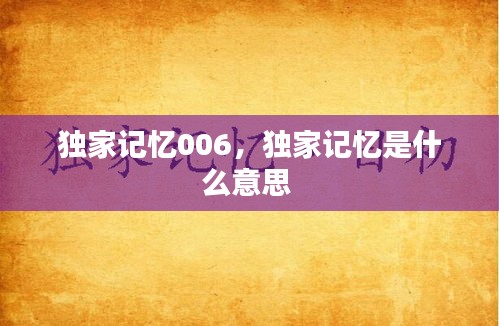 独家记忆006,独家记忆是什么意思