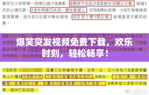 随着互联网的普及和移动设备的广泛应用,视频已成为我们日常生活中不可或缺的一部分,爆笑突发视频以其独特的魅力和欢乐的氛围,吸引了众多网友的关注和喜爱,本文将为大家介绍如何免费下载这些爆笑突发视频,让你随时随地享受欢乐时刻。