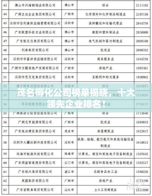 茂名孵化公司榜单揭晓,十大领先企业排名!