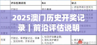 2025澳门历史开奖记录|前沿评估说明