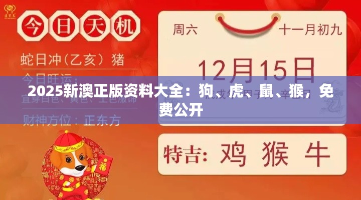 2025新澳正版资料大全:狗、虎、鼠、猴,免费公开
