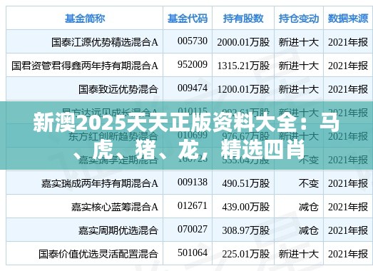 新澳2025天天正版资料大全:马、虎、猪、龙,精选四肖