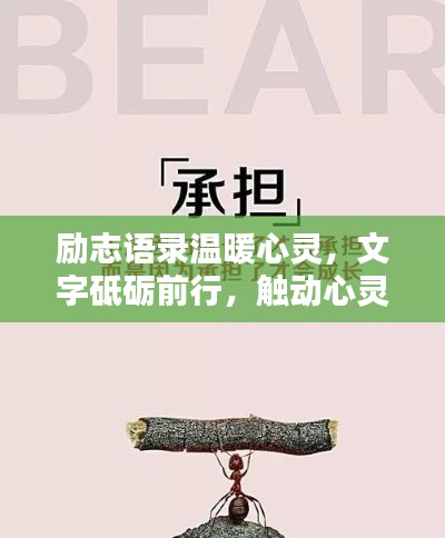人生路上,励志语录带文字的陪伴,是我们前行的动力,这些文字温暖我们的心灵,给我们力量,让我们在困难面前不屈不挠,在这漫长的旅程中,让我们怀揣希望,勇敢前行,书写属于自己的辉煌人生,让我们一起砥砺前行,用文字温暖心灵,共同创造美好的未来。