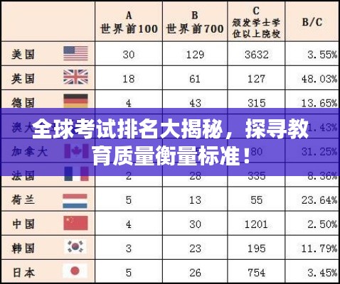 在全球化的时代背景下,教育领域的交流与发展日益频繁,世界考试排名,作为衡量各国教育质量的重要指标之一,逐渐受到广泛关注,本文将从多个角度探讨世界考试排名,揭示其背后的意义与影响因素。