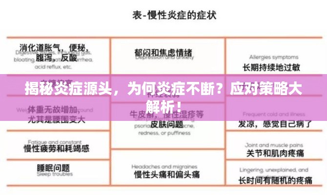 长年炎症不断可能是身体免疫系统失衡的表现,也可能与生活习惯、环境因素和遗传等因素有关,为了缓解炎症,我们需要寻求专业诊断、调整生活方式、针对性治疗、注意环境因素以及进行心理调适,通过综合措施,我们可以有效缓解炎症反应,提高生活质量。