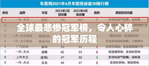 在体育竞技的舞台上,冠军的荣誉无疑是最耀眼的,有些冠军的经历却充满了波折与不幸,他们的夺冠之路充满了辛酸与泪水,本文将带你了解世界最悲惨冠军排名,探究这些冠军背后的故事。