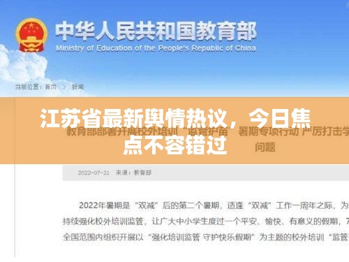 随着互联网的普及和社交媒体的兴起,舆情成为了反映社会热点、民生关切的重要窗口,江苏省作为我国经济发达的地区之一,其舆情动态一直备受关注,本文将围绕“江苏今日舆情热议最新消息”展开,探究江苏省内的热点话题和民众关切。