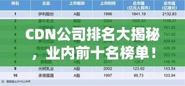 随着互联网技术的不断发展,内容分发网络(CDN)已成为许多企业和个人网站加速内容分发、提升用户体验的重要工具,本文将介绍CDN公司排名前十名,这些公司在CDN领域具有较高的知名度和市场份额。