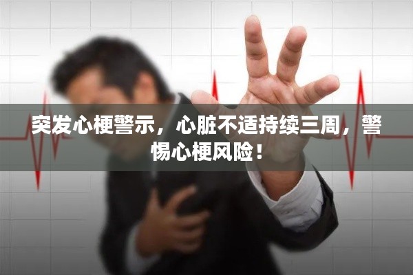心脏不舒服三周突发心梗是一种严重情况,需要我们高度重视,了解心梗的征兆、症状、原因及应对措施,对于预防和治疗心梗具有重要意义,保持良好的生活习惯、适度运动、保持良好的心态、定期体检和控制基础疾病,是预防心梗的有效方法,当身体出现不适时,应及时就医,不要拖延,让我们关爱心脏健康,远离心梗威胁。