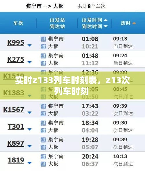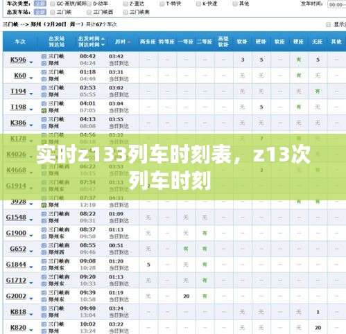 随着我国铁路网络的不断扩展和优化,高速列车成为了人们出行的重要选择。Z133列车作为连接我国南北的重要交通工具,其时刻表的实时更新对于旅客来说至关重要。本文将为您详细介绍Z133列车的实时时刻表,帮助您更好地规划行程。