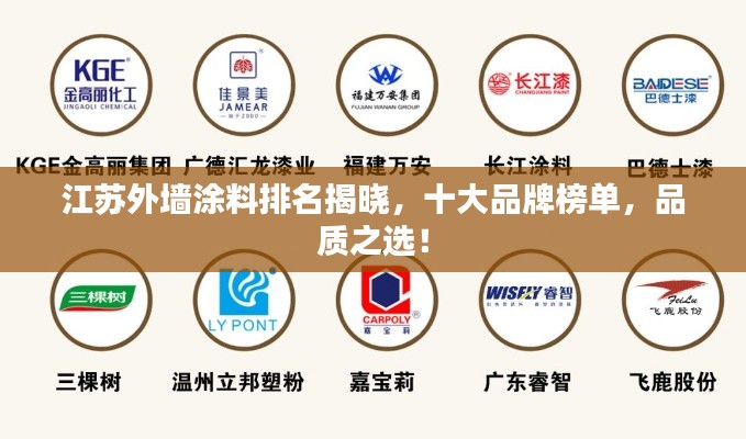 江苏,这片繁荣富饶的土地,以其独特的地理和文化优势孕育出众多优秀的建材企业,在外墙涂料领域,江苏企业更是凭借其卓越的产品质量和创新的技术水平,赢得了广大消费者的信赖,我们将介绍江苏外墙涂料排名前十名的品牌,这些品牌在市场上享有较高的知名度和良好的口碑。