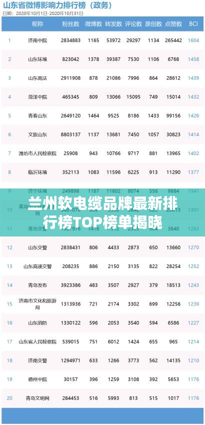 随着科技的不断发展和进步,电缆行业也在逐渐壮大,兰州作为中国电缆产业的重要基地之一,拥有众多的电缆品牌,本文将为您介绍兰州软电缆品牌排行榜最新的相关信息。