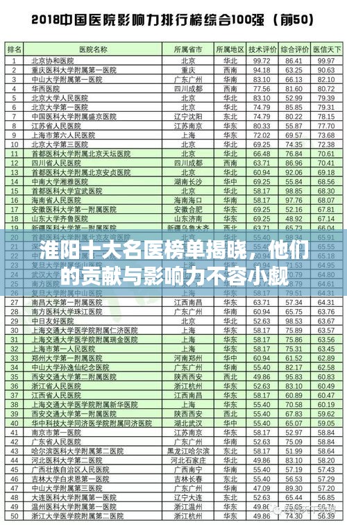 淮阳十大名医榜单揭晓,他们的贡献与影响力不容小觑